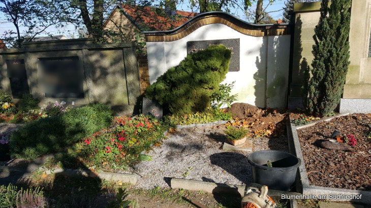 Die Blumenhalle am Südfriedhof bietet Ihnen auf dem Friedhof Großpösna – Grabpflege die jährlich vereinbart werden kann aber auch bis hin zur Dauergrabpflege über einen längeren Zeitraum.