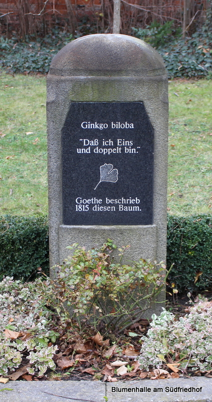 Über der Schrift ist ein Ginkgoblatt abgebildet. Der Ginkgo ist ein Sinnbild für Hoffnung, langes Leben, Freundschaft, Unbesiegbarkeit und die Zusammengehörigkeit zweier Menschen. Das Letztere wird durch die geteilte Form des Blattes symbolisiert.