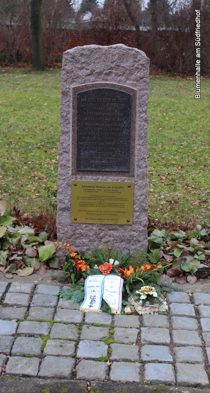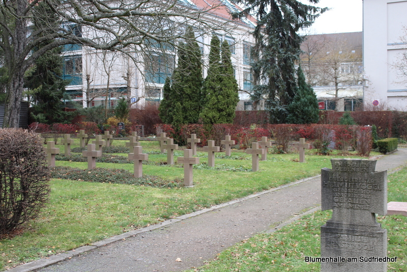 Auf der anderen Seite des Gemeinschaftsgrabes befindet sich ein Grabfeld für die Gefallenen des I. Weltkriegs. Sie erlagen ihren Verletzungen im Garnisonslazarett Leipzig-Möckern.