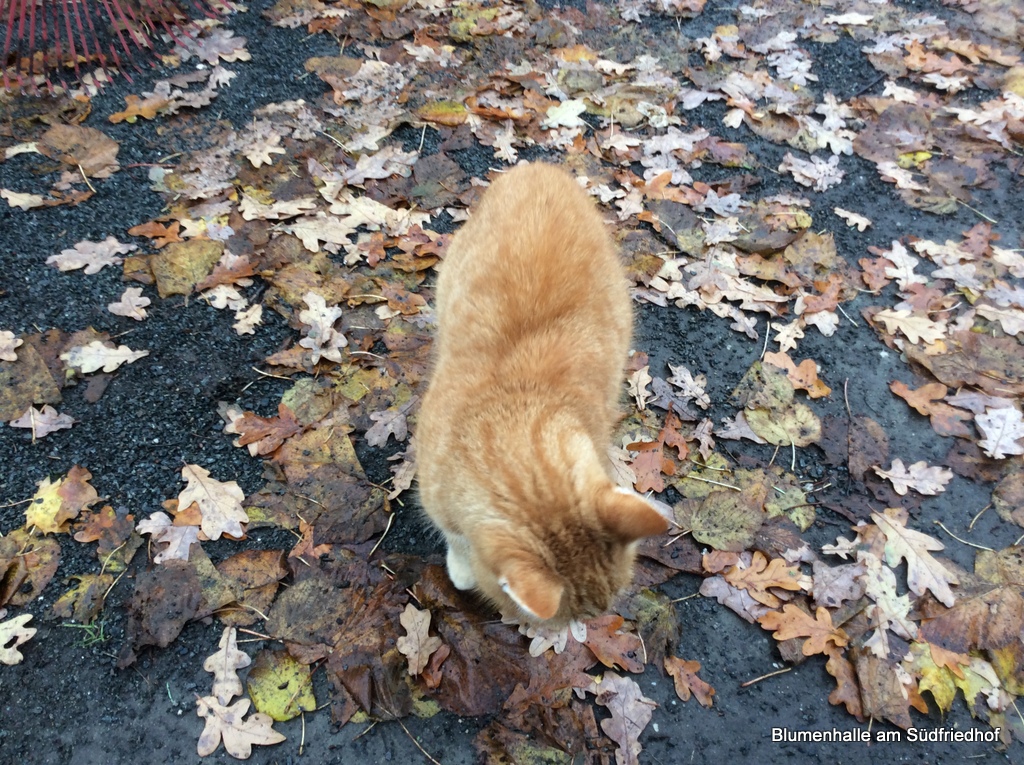 Im Herbstlaub kaum zu erkennen, ist sie dennoch sehr neugierig.