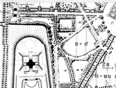 Der künftige Standort sollte sich aus Sicht vom Königin Luise-Haus rechts neben dem rechten Pavillon des Osttores befinden.