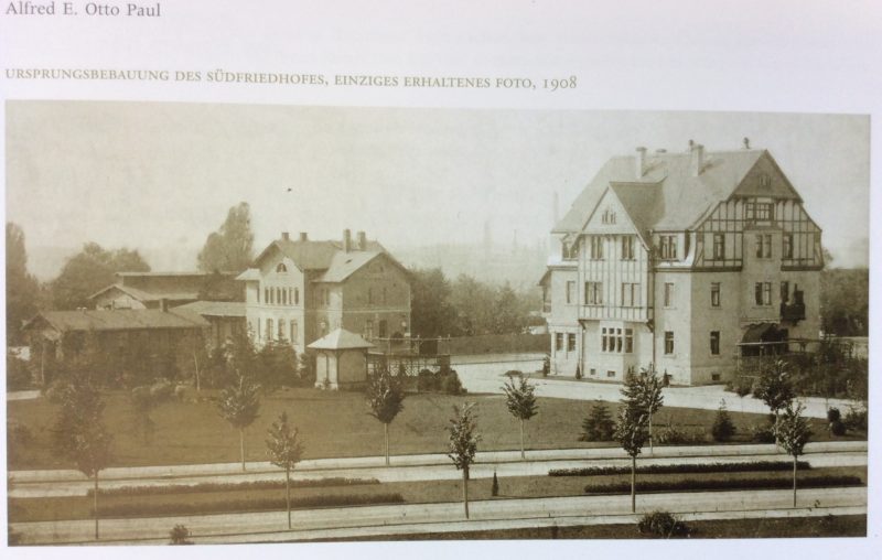 Schließlich nahm er das Angebot der Stadt Leipzig an, am Osteingang des Südfriedhofes zu bauen. Rechts neben dem bereits bestehendem Häuschen der Verkaufshändler Mönch und Born sollte der Bau errichtet werden.