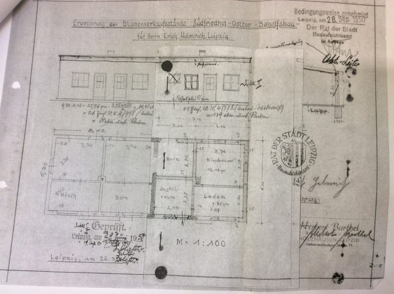 Am 28.9.1950 erhielt Herr Erich Helmrich vom Bauaufsichtsamt Leipzig die Baugenehmigung.