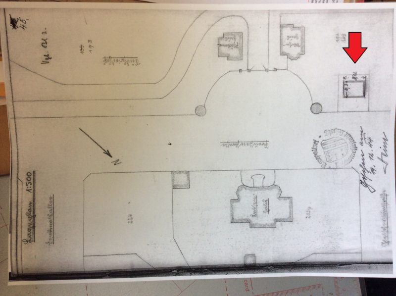 Hierzu sehen Sie das genehmigte Häuschen von gesamt 48 m² mit Trennwand. Dort bot der Bau anfang’s einen bescheidenen Platz für 2 Läden mit Arbeitsräumen. Auf jeden Fall waren die Umstände nicht mit heute zu vergleichen.