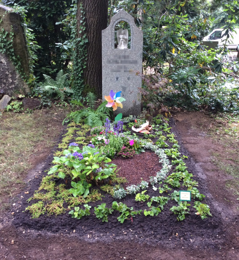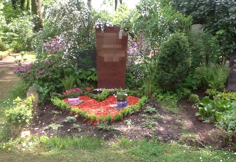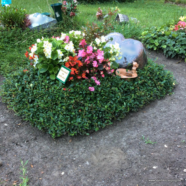- Ein kleiner herzförmiger Gedenkstein sollte in die Grabgestaltung integriert werden
