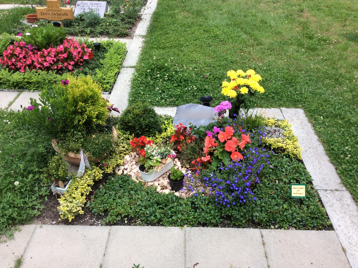 - Ein doppeltes Erdwahlgrab nach Wunsch des Kunden gestaltet und gepflegt