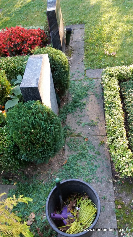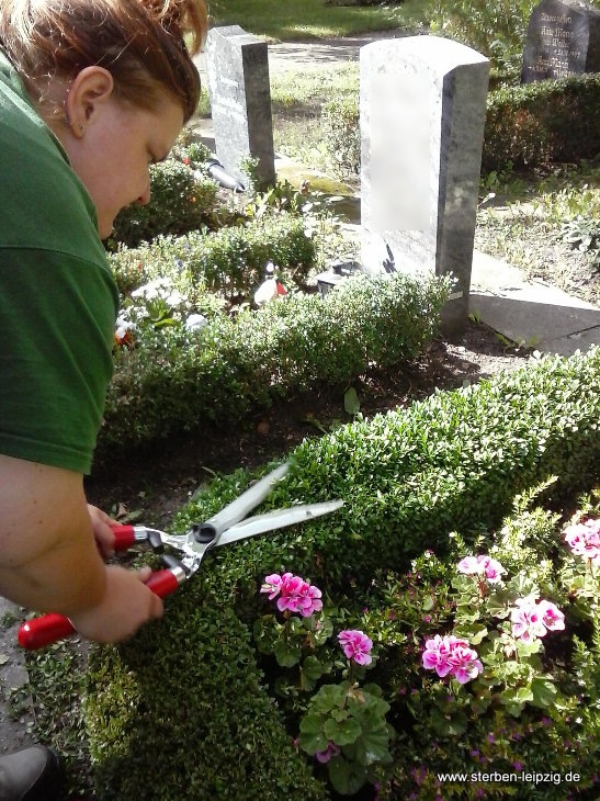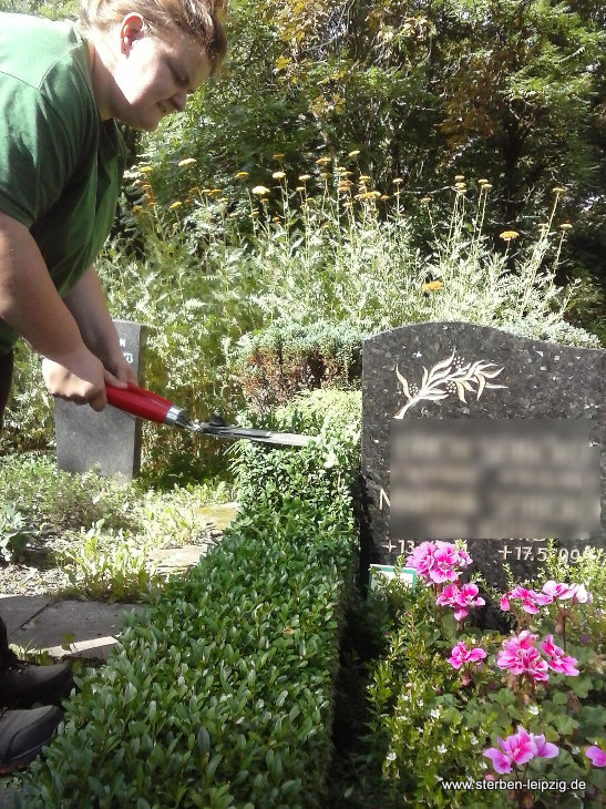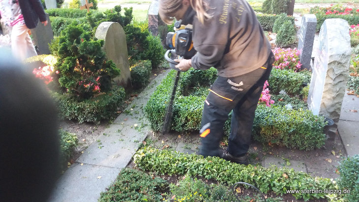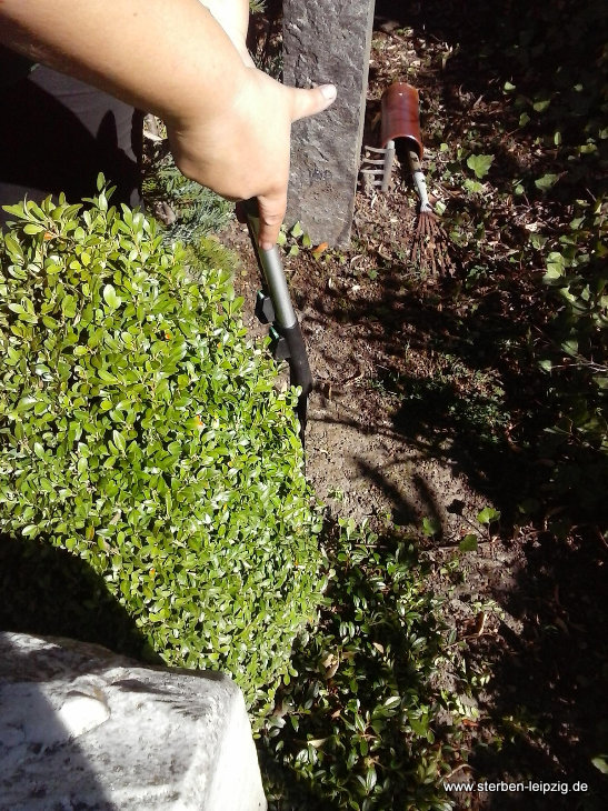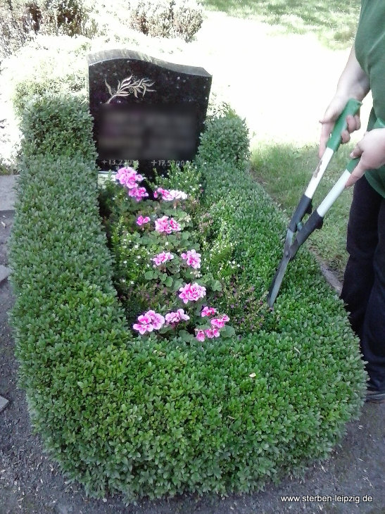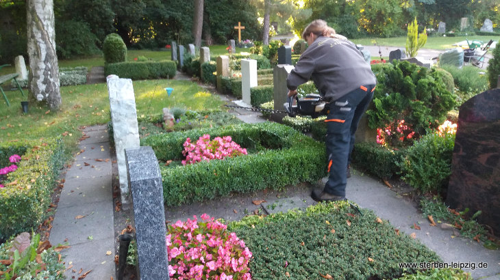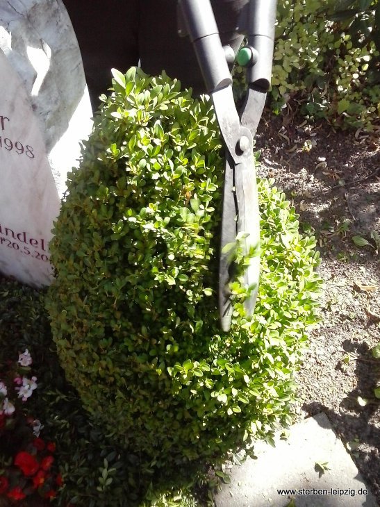 Ebenfalls gehört das Schneiden der Rahmengehölze genauso wie viele andere Arbeiten zu den Leistungen / Inhalten unserer Grabpflege in Leipzig.