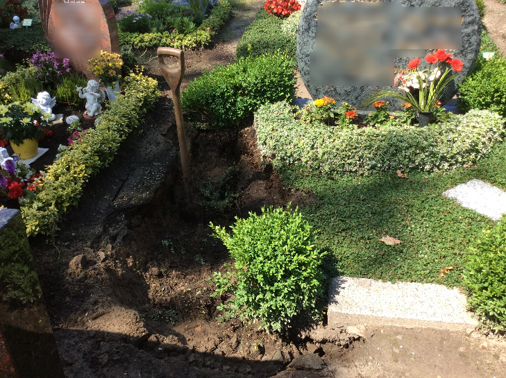 Anschließend möchten wir Ihnen Beispiele zeigen wie das Beseitigen der Senkschäden durch unsere Grabpflege Leipzig erfolgen kann.