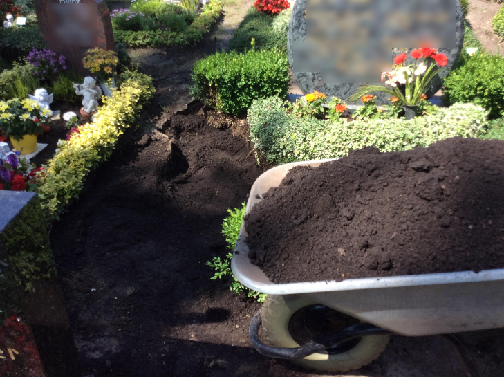 Grabpflege Leipzig – so machen wir’s – Die Erdauffüllung nach dem Grabeinbruch