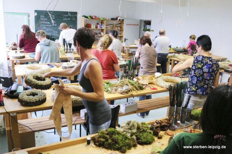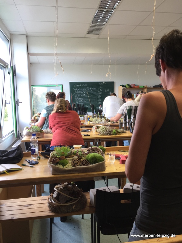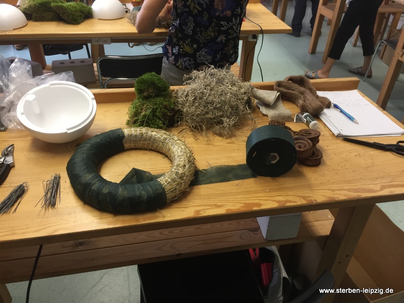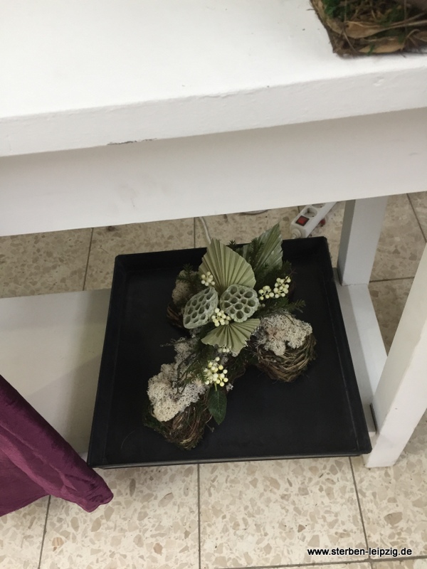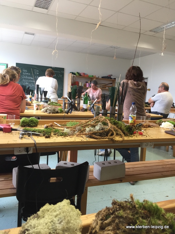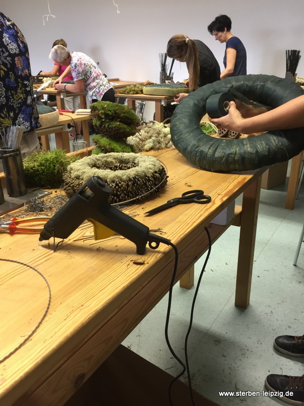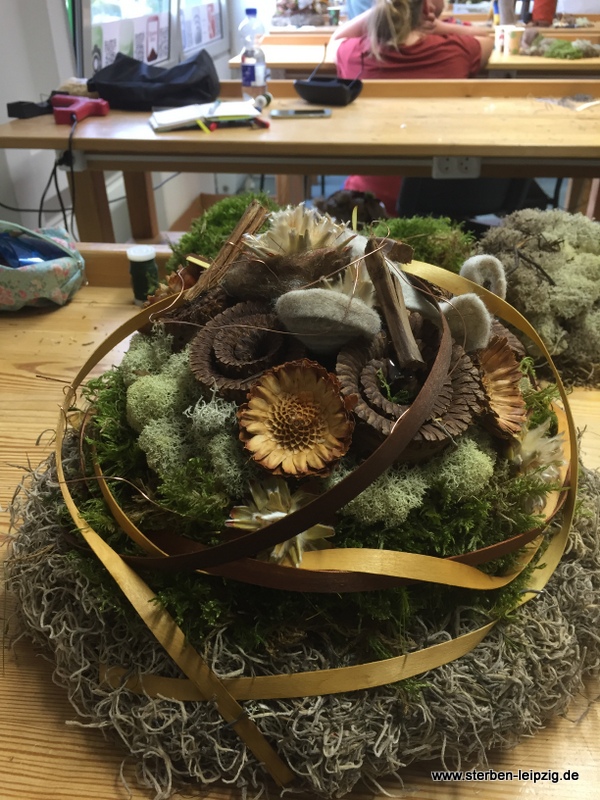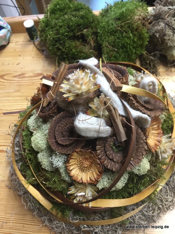 Des Weiteren versuchen wir Neues auch für den jährlichen Totensonntag zu erlernen. Denn ständig sind neue Podukte bei der Kundschaft gefragt. Obwohl grundlegende Wünsche bleiben. Das heißt relativ viel Blumenschmuck für wenig Geld.
