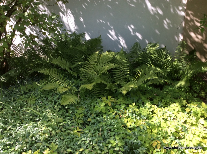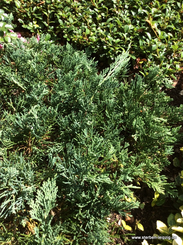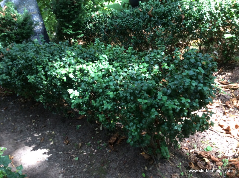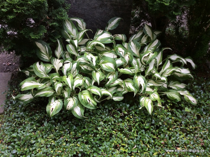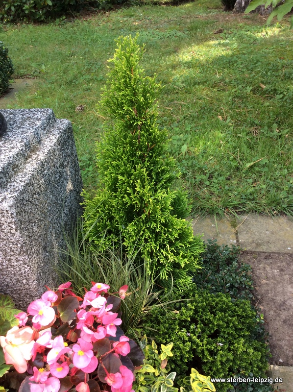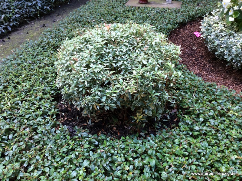 Befindet sich hinter dem Grabstein eine sommergrüne Hecke, sollte das Rahmengehölz im Gegensatz dazu wintergrün sein und sich von der Farbe der Hecke unterscheiden.