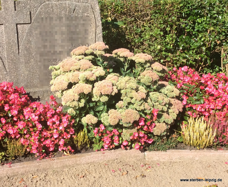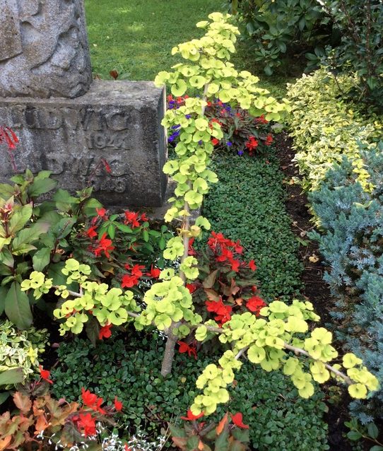Bei der Grabgestaltung haben wir einerseits Bodendecker, andererseits die saisonale Bepflanzung. Aber auch die Rahmengehölze haben dabei eine wichtige Funktion.